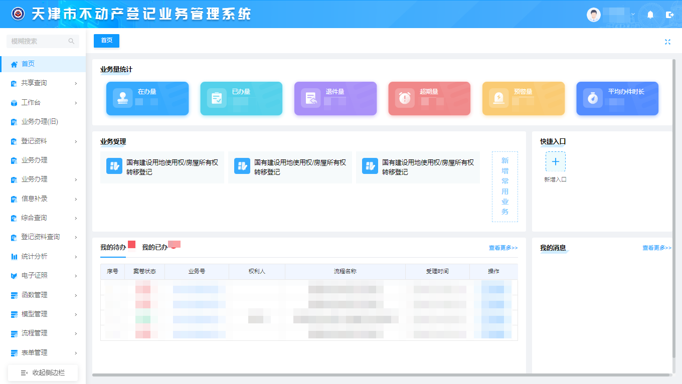 天津市不動產(chǎn)登記業(yè)務(wù)管理系統(tǒng)界面