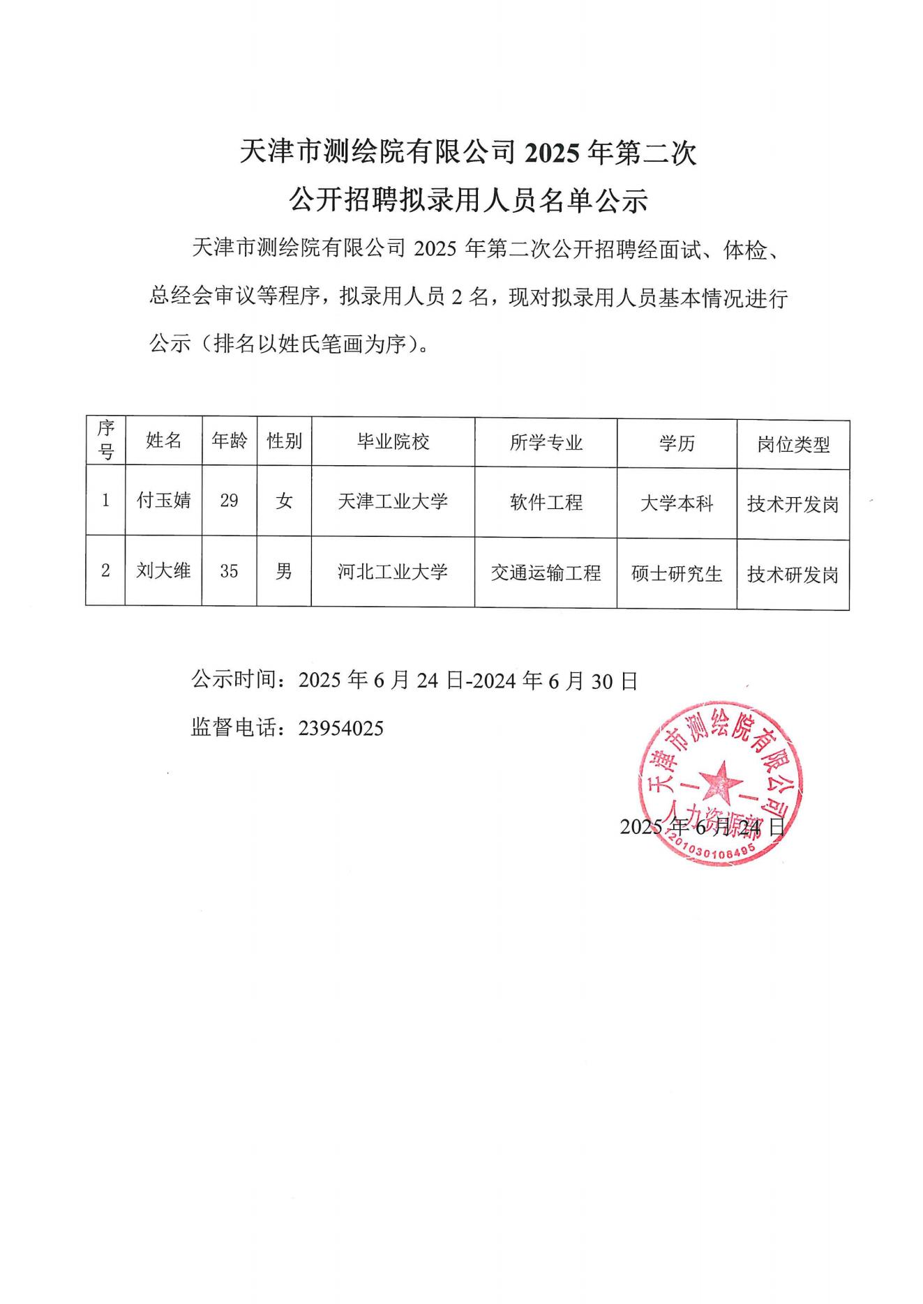 上一篇:天津市測繪院有限公司2025年第二次公開招聘擬錄用人員名單公示