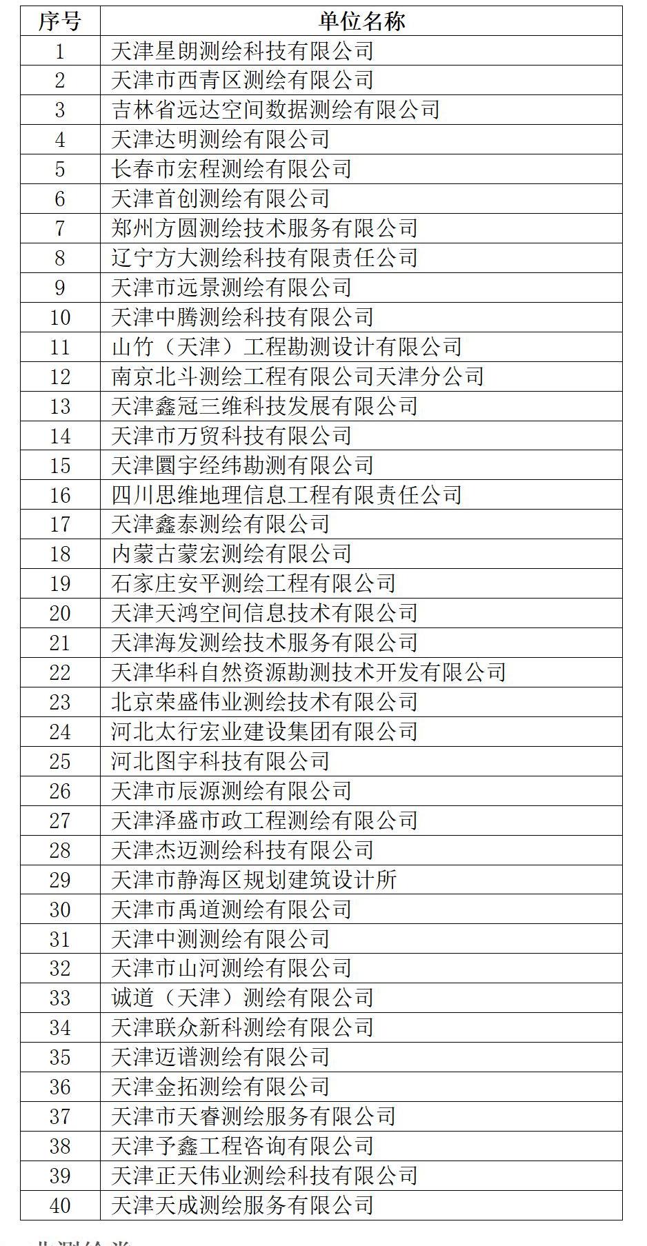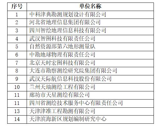 天津市測繪院有限公司2023-2024年度生產項目合格供方評選結果公示如下。