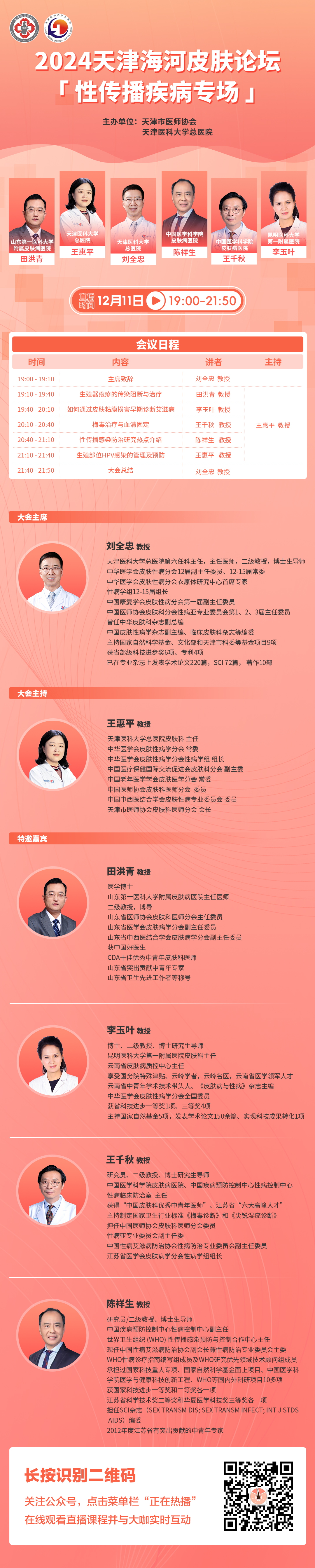 本次會議聚焦性傳播疾病的診療進(jìn)展,內(nèi)容涉及艾滋病、生殖器皰疹、尖說濕疣、梅毒等多個板塊,將為廣大同行提供一個高水準(zhǔn)的學(xué)術(shù)交流平合。