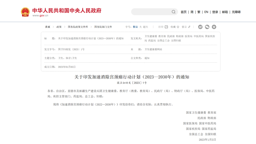 中國(guó)十部門(mén)聯(lián)合:加速消除宮頸癌行動(dòng)計(jì)劃(2023-2030年)