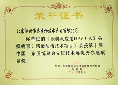 2013年,“派特靈應(yīng)用HPV感染防治技術(shù)項(xiàng)目”榮獲第六屆金橋獎優(yōu)秀項(xiàng)目獎。