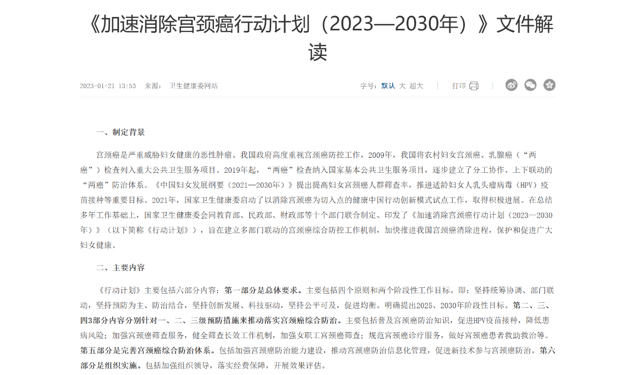 (我國發(fā)布《加速消除宮頸癌行動計劃》)