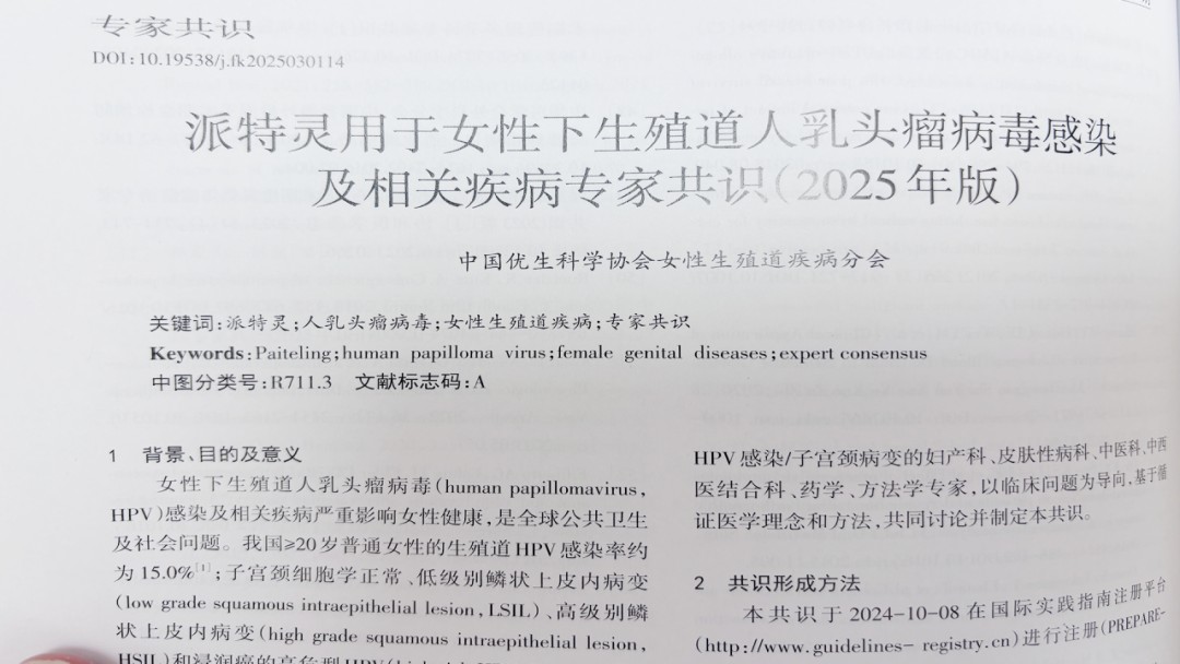 (派特靈用于女性下生殖道人乳頭瘤病毒感染及相關疾病專家共識)