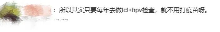 本次話題中,有網(wǎng)友評(píng)論“只要每年去做TCT+HPV檢查,就不用打疫苗呀?!?/span>
